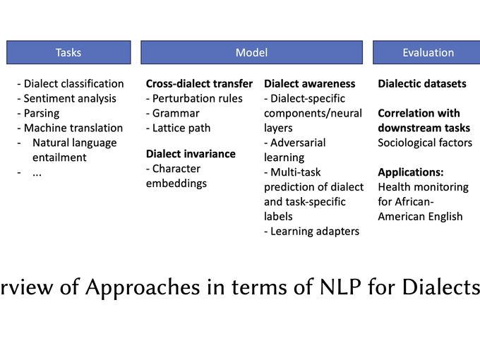 State-of-the-art natural language processing (NLP) models are trained on massive training corpora, and report a superlative performance on evaluation datasets. This survey delves into an important attribute of these datasets: the dialect of a language. Motivated by the performance degradation of NLP models for dialectal datasets and its implications for the equity of language technologies, we survey past research in NLP for dialects in terms of datasets, and approaches. We describe a wide range of NLP tasks in terms of two categories: natural language understanding (NLU) (for tasks such as dialect classification, sentiment analysis, parsing, and NLU benchmarks) and natural language generation (NLG) (for summarisation, machine translation, and dialogue systems). The survey is also broad in its coverage of languages which include English, Arabic, German, among others. We observe that past work in NLP concerning dialects goes deeper than mere dialect classification, and extends to several NLU and NLG tasks. For these tasks, we describe classical machine learning using statistical models, along with the recent deep learning-based approaches based on pre-trained language models. We expect that this survey will be useful to NLP researchers interested in building equitable language technologies by rethinking LLM benchmarks and model architectures.