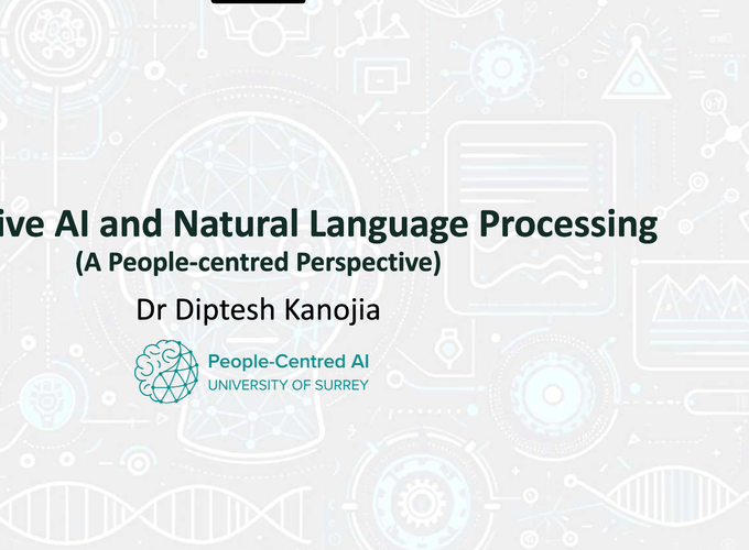 Invited lecture at IET Surrey discussing Generative AI and Natural Language Processing. ChatGPT and other large language models are now publicly available offering new opportunities to apply them to problem-solving, with both pros and cons. Taking a people-centered approach to evaluation, Dr Diptesh Kanojia joined us to explain the challenges in utilizing these models and discuss some solutions to tune/adapt such models in resource-constrained scenarios. His talk is illustrated by applications healthcare clinical report generation, text-attribution in education to detect the source of generated text, followed by an insightful Q&A session with the live audience.